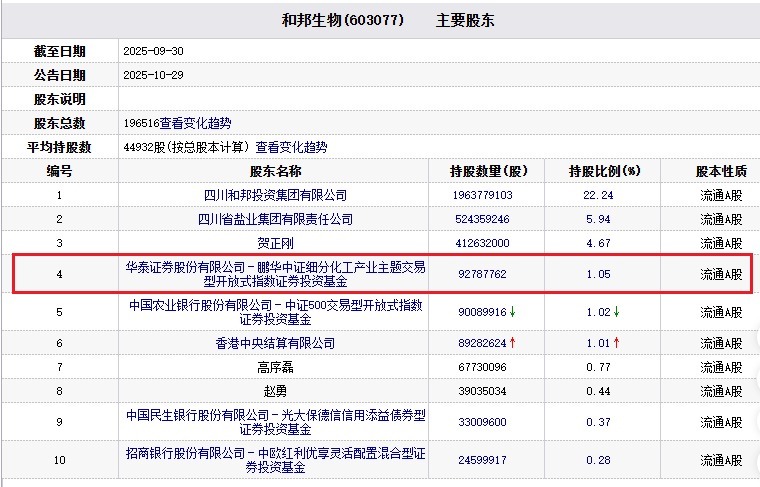 收场2025年9月30日,和邦生物主要激动中,华泰证券股份有限公司-鹏华中证细分化工产业主题往来型洞开式指数证券投资基金握股比例为1.05%,为第四大激动。