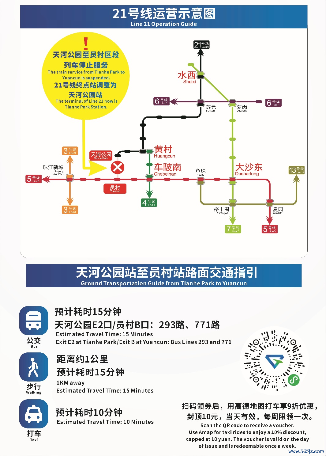 今天起,二十一号线尽头站由河汉公园站“接棒”