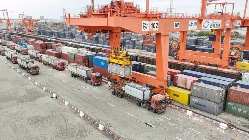 “本年1月份,西部陆海新通谈班列磷矿粉、锌精矿、叶蜡石、纸浆等货色发运量较大,菜籽油、大米等年货需求也相比昌盛,车站每天到发铁海联运班列在24列控制,为春节时辰丰富年货市集和得志节日历间企业分娩提供运力保险。”钦州港东站站长韦文康说谈。