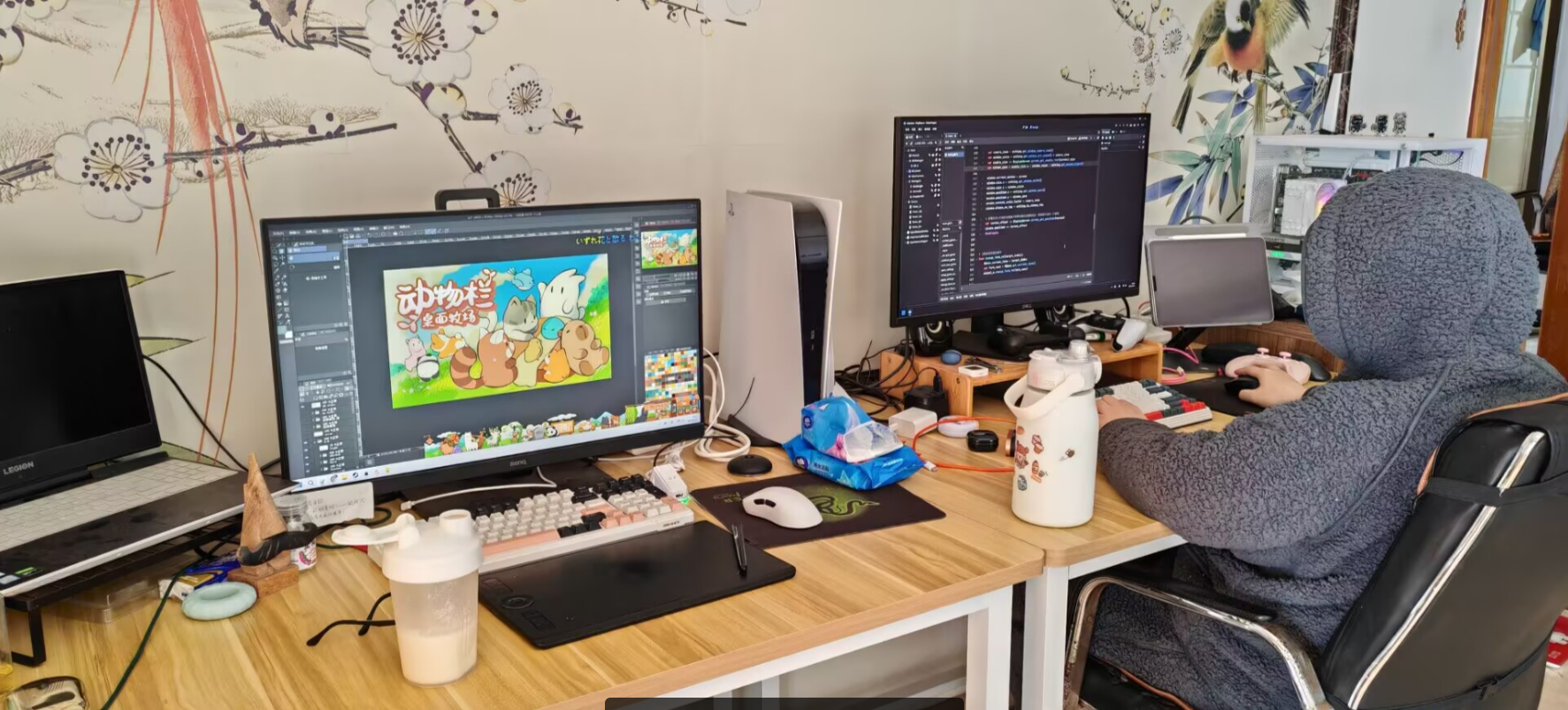 这对来自广州与福州的配偶档开采者,在游戏公司再会时,被出其不意的疫情打乱假想,却无意给了他们一场“长途合营”的婚前磨合:从零自学次序与好意思术,用一年时候将“别国恋”熬成“开采窜改友情”。2022年底,小鹿归国,两东谈主正经修复CaveLiquid职责室,两东谈主的第一个指标即是: